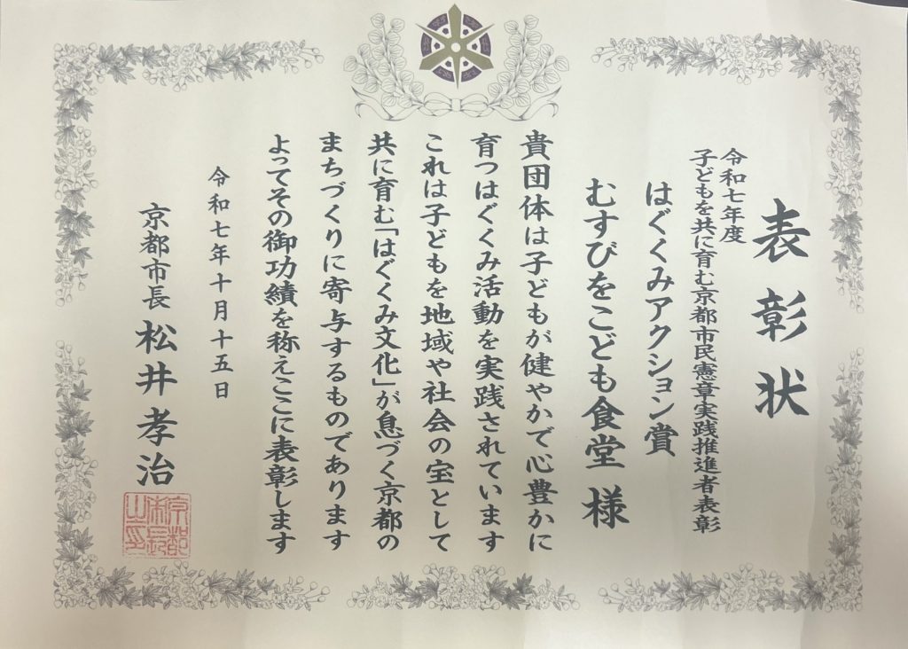 ということで、京都市自治記念式典にて「はぐくみ憲章実践推進者」として表彰をいただきました。