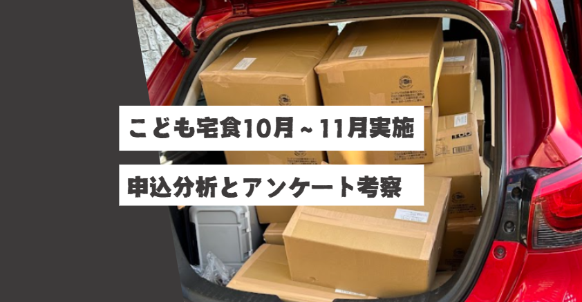 2025年10月~11月に実施しましたこども宅食の応募において、各行政区からの申込数や年齢分布などを以下のとおりまとめています。個人が特定されないように記述の設問に関しては表現を変えていますのでご了承ください。内容は世帯によって異なりますが、お米、食料品、飲料、生活消耗品など詰め合わせてお送りします。