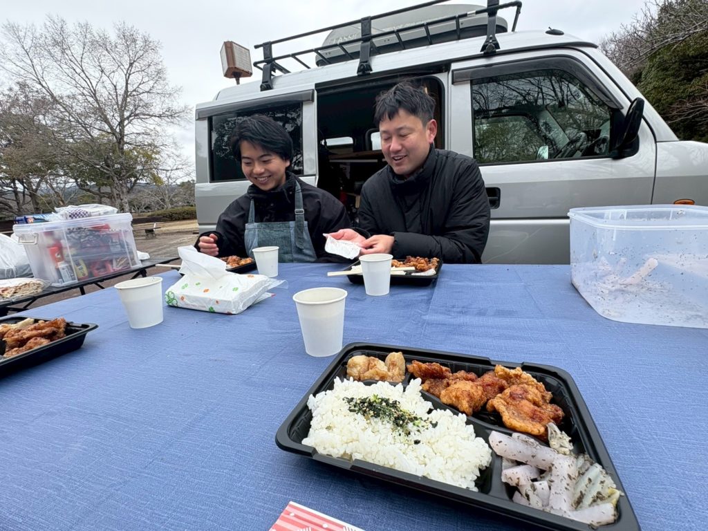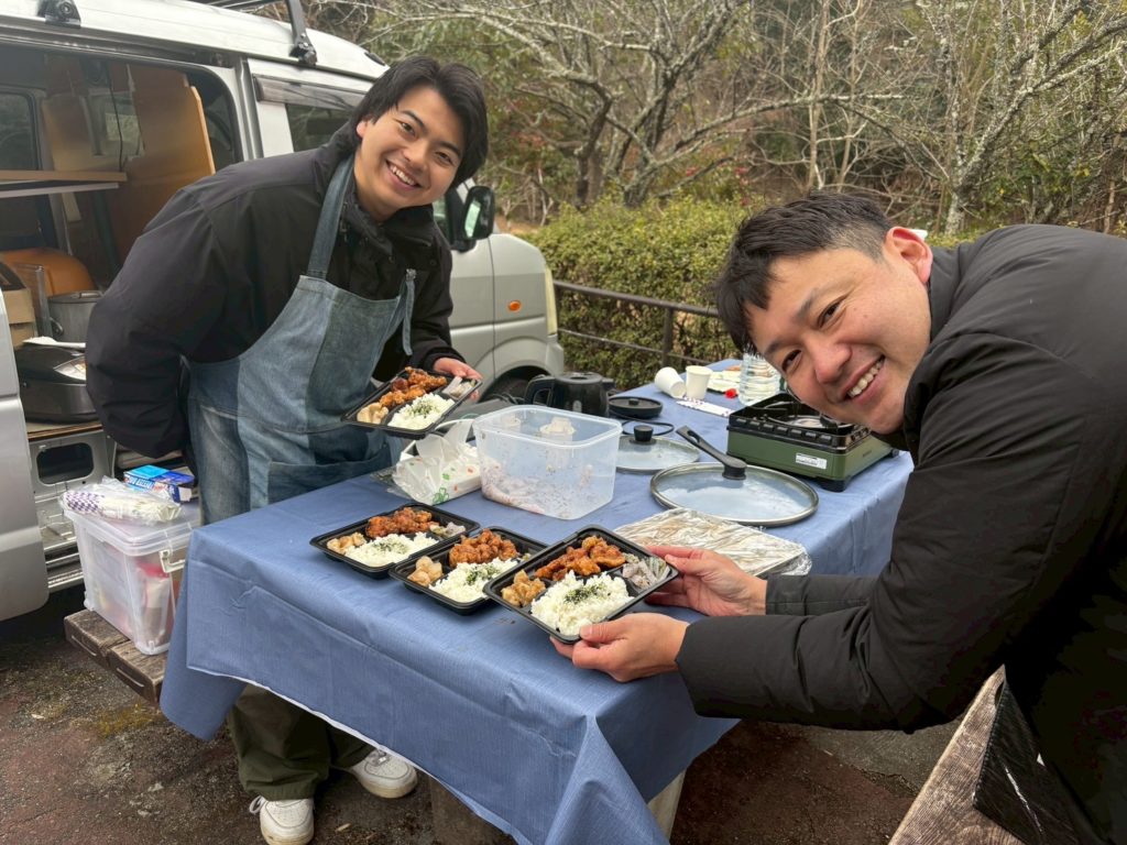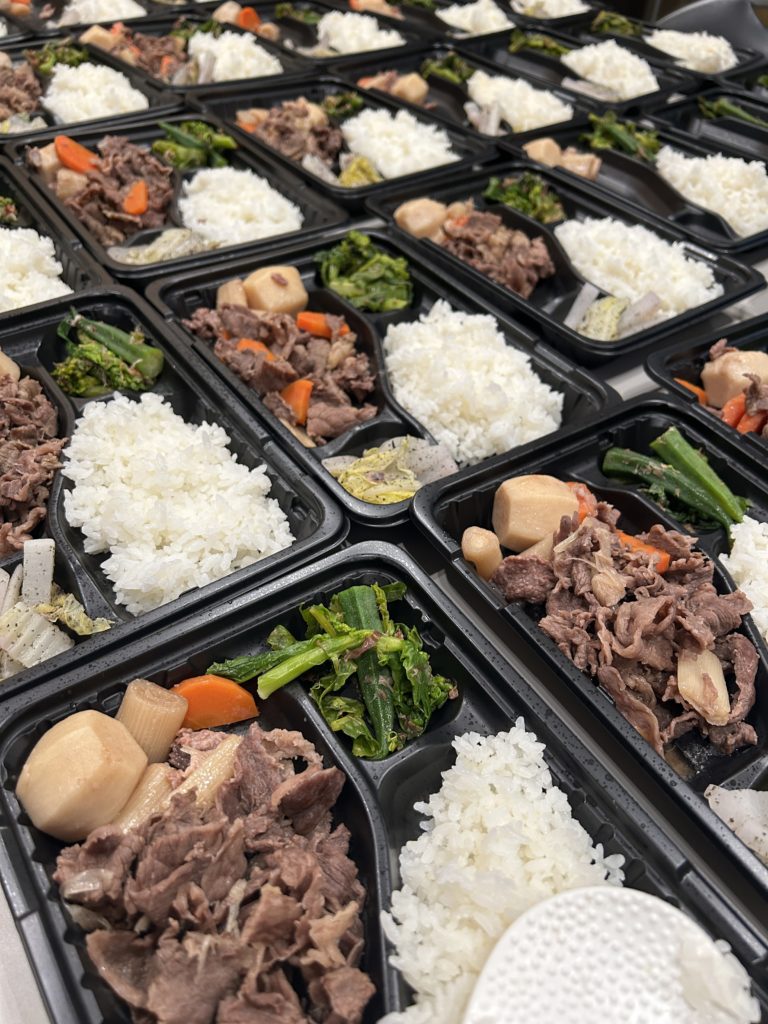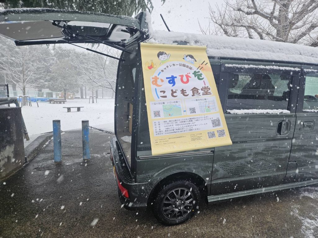 7日土曜日、宝ヶ池公園には今回野菜を提供いただいた方にもお手伝いいただき、実施できました。唐揚げをメインにご寄付いただきました白菜と大根をゆかり和えに、また京果食品様からは小芋のミンチ和えを副菜にしました。8日日曜日は大雪、公園には珍しく雪がたくさんつもりました。現地調理は諦めて、完全にお弁当にしてお配りしました。そういえば、はじめてこども食堂をした2025年2月も雪が降っていたなぁ、と思い出しつつ、最後は雪だるまを作って遊びました。